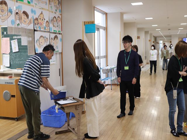 | 昨年度に引き続き、引き渡し訓練を行いました。今回は、1年生の児童を対象に、フォームを活用して参加状況等を把握する取組に挑戦しました。そして、子どもたちや保護者、教職員が引き渡しの手順を確認し、万が一に備えて訓練を行うことの大切さを改めて感じることができました。今後も、さまざまな避難訓練を実施していく予定です。 |