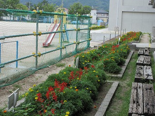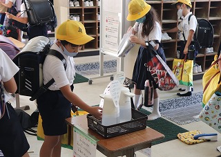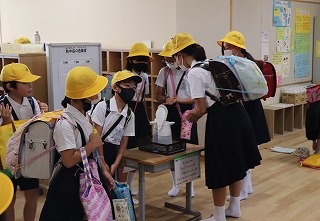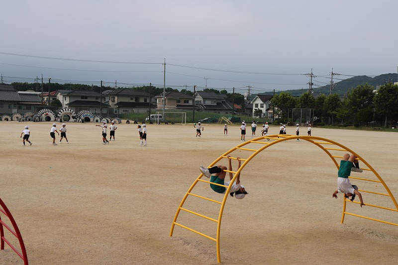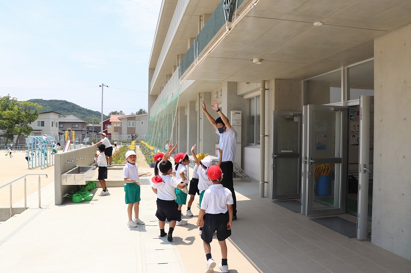 | 7月に入りました。まだ、梅雨は明けませんが、気温もずいぶん高くなってきました。子どもたちは毎日元気に外で遊んでいますが、気を付けなければならないのが熱中症です。学校では、熱中症の危険度を掲示したり、昇降口のミストシャワーを噴霧したりと工夫しながら過ごしています。水分や塩分をしっかりと摂り、みんなで熱中症に気を付けたいですね。 |