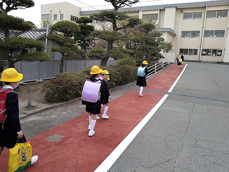| 5月11日(火)2,3,4校時に社会科の「学校のまわりのようす」の学習で中関小校区の西側の探検を行いました。航空自衛隊防府南基地敷地内を通り、昔ながらの町並みの残る新地、上本町、本町を見ながら海まで向かいました。いろいろなお店、神社、お寺、公園などを発見し、地図に書き込みました。中関のことがよく分かり、天候もよく貴重な体験になりました。 |