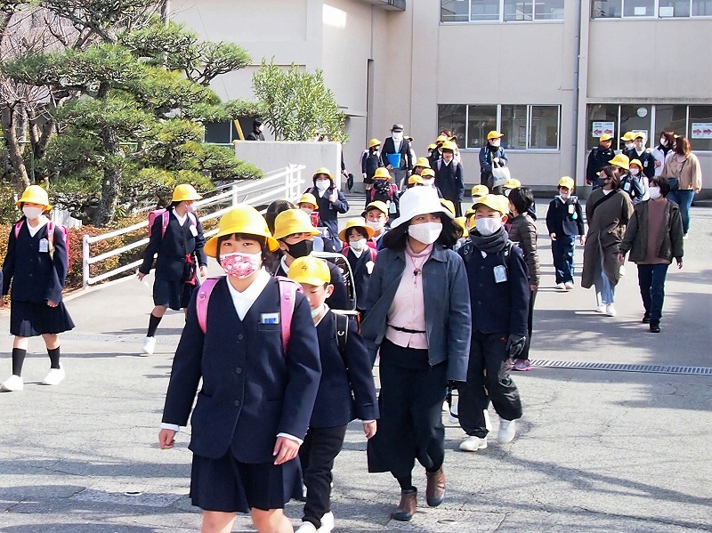 3月3日(水)に地区児童会と地区別下校が行われました。5校時の地区児童会では、班長の引き継ぎ式を行いました。各教室で班長や副班長に感謝の言葉を伝えたり、新しい登校班の並び方を確認したりしました。その後は運動場に出て、みまわり隊、母親クラブ、PTA地区幹事の皆さんに感謝の言葉を伝えました。新しい登校班の並びで、緊急時に備えた下校に取り組むこともできて、とても有意義な時間を過ごせました。