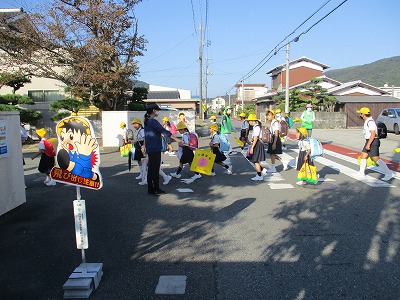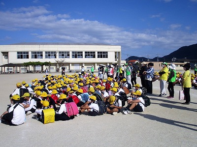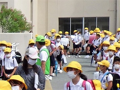 | 1学期に引き続き、2学期も緊急時を想定して地区別下校を行いました。5校時終了後、地区ごとに運動場に集合しました。危機意識をもって、真剣に話を聞く子どもたちの姿が増えたように感じました。歩きで帰る児童は、地域の皆様に見守られながら並んで安全に下校することができました。参加していただいた皆様、ありがとうございました。 |