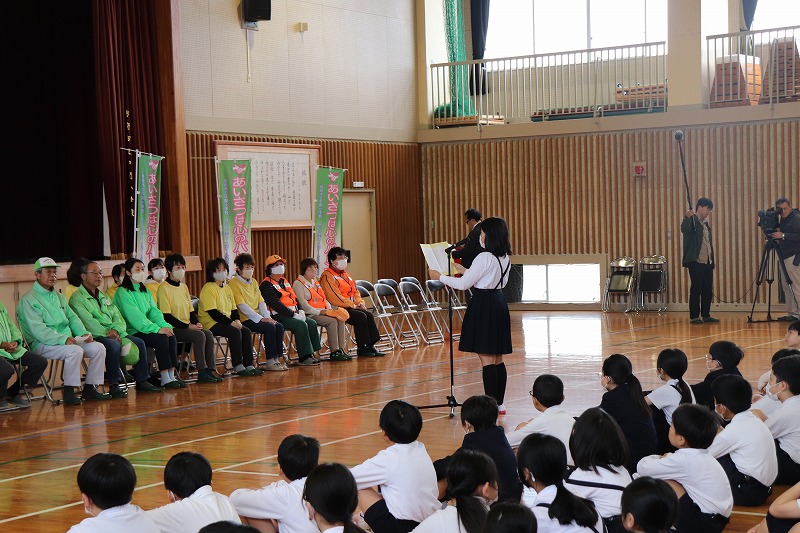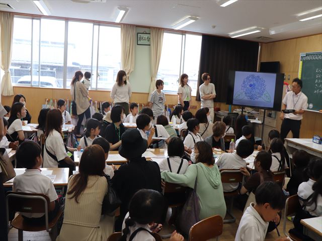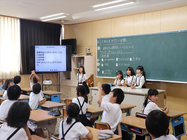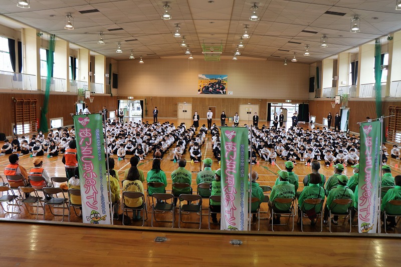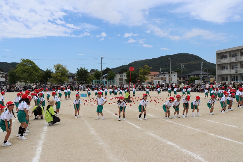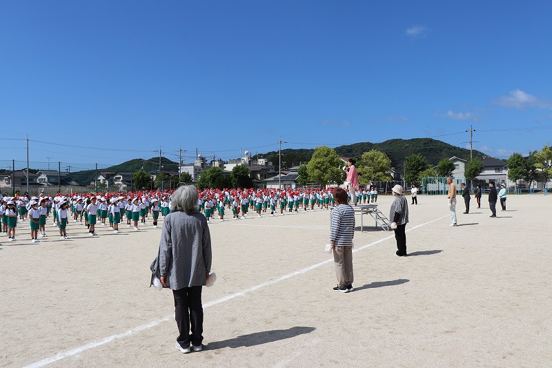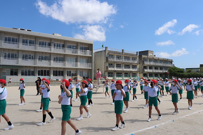 | 中関ふれあい運動会を前に、中関塩浜唄の会の方においでいただきました。伝統ある「中関小唄」の動きを一つ一つ丁寧に教えていただきました。「中関小唄」は、全校児童がグラウンドに集まり、輪になって披露します。昨年度は保護者の方にも、当日たくさん参加していただきました。児童、保護者、地域の方で心を一つに、このすばらしい伝統の踊りを繋いでいきたいと思います。 |
