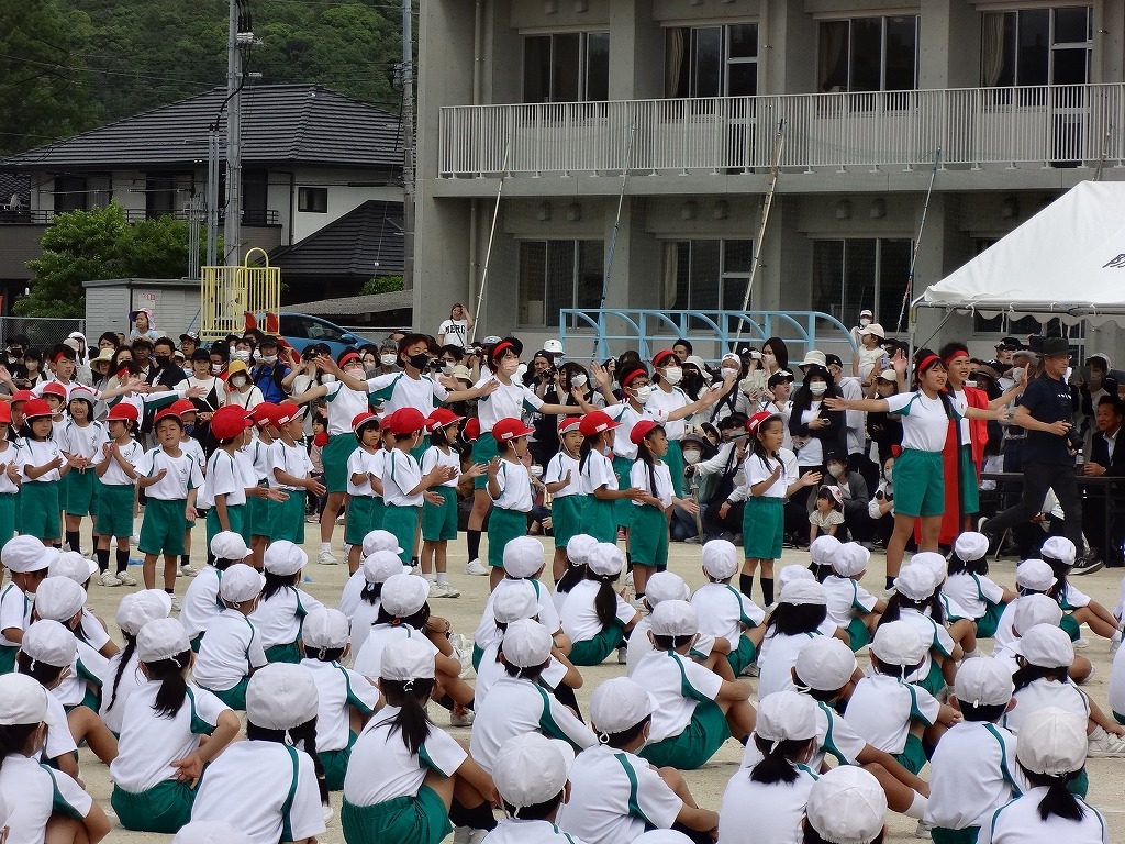 | 5月28日(日)に、第2回中関ふれあい運動会がありました。今年度は、全校児童・保護者・地域が一堂に会して開催することができました。全校児童でのエール交換や各学年の競技、地域種目も大変な盛り上がりを見せ、中でも「中関小唄」は、児童と地域が一体となって素晴らしい演技になりました。地域のみなさまありがとうございました。 |