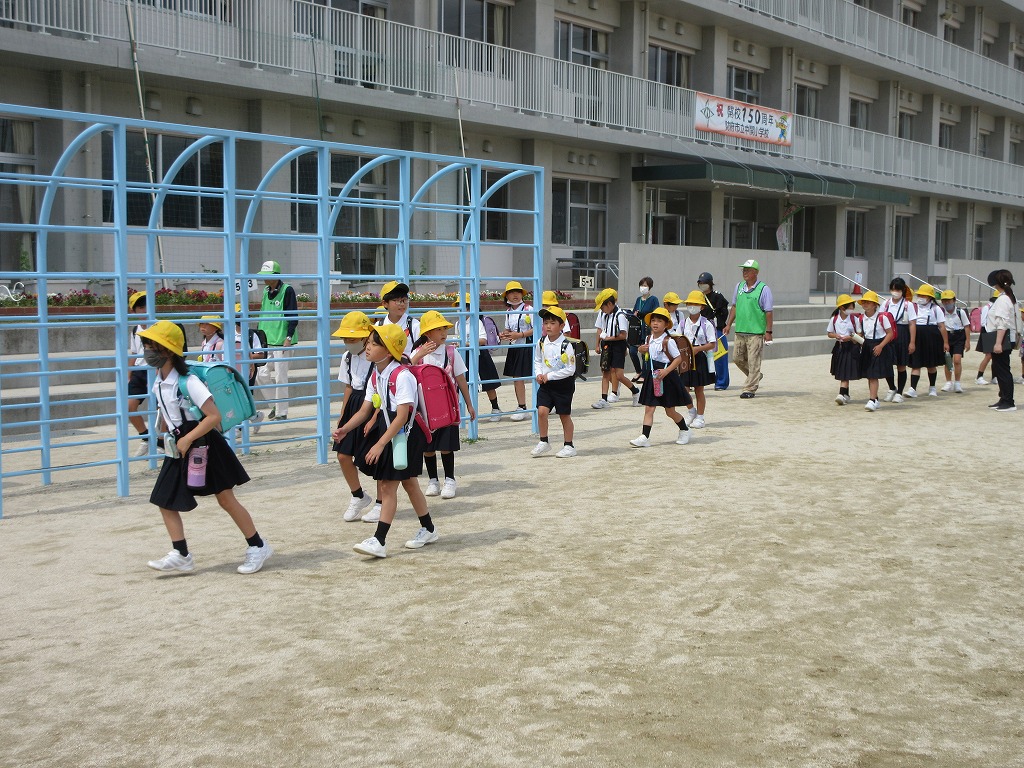 | 中関幼稚園と合同で引き渡し訓練を行いました。今回は、全校児童を対象に、参加できる児童と弟妹関係にある園児による訓練です。子どもたちや保護者、教職員が引き渡しの手順を確認し、もしものときに備えて訓練を行うことの大切さを改めて感じることができました。今後も、さまざまな避難訓練を実施していく予定です。 |