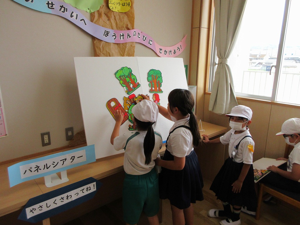 | 6月13日から23日まで、学校図書館では「中関小学校図書館祭り」を開催しています。普段触れる機会のない「パネルシアター」や「布絵本」の展示をはじめ、「しおり作り」や「わたしのおすすめの本の紹介」、図書ボランティアによる「読み聞かせ」などさまざまな企画を行っています。今、学校図書館は毎日大盛況です。ぜひ一度、学校図書館へお立ち寄りください。お待ちしています。 |