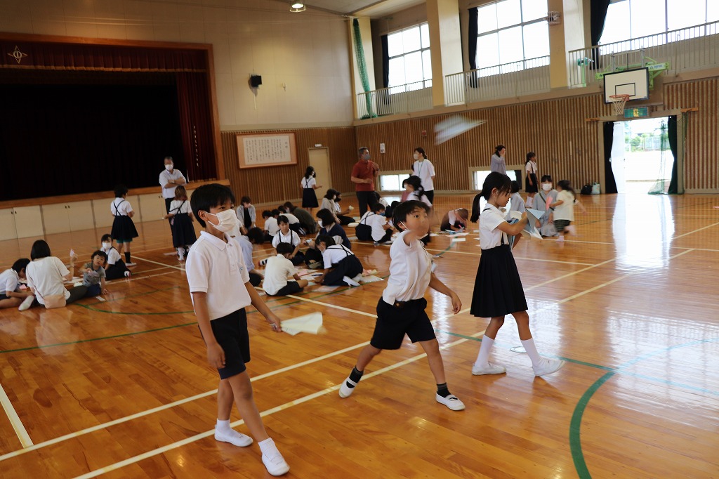 | 中関ふれあい運動会を前に、中関塩浜唄の会の方においでいただきました。伝統ある「中関小唄」の動きを一つ一つ丁寧に教えていただきました。今年度の「中関小唄」は、久しぶりに全校児童がグラウンドに集まり、輪になって披露します。児童と地域の心を繋いで一つになって踊ります。この素晴らしい伝統の踊りに保護者の方、地域の方もぜひご参加ください。 |