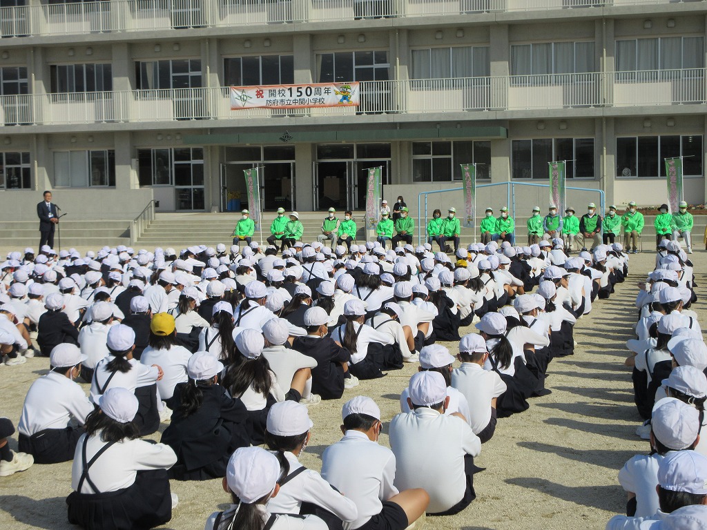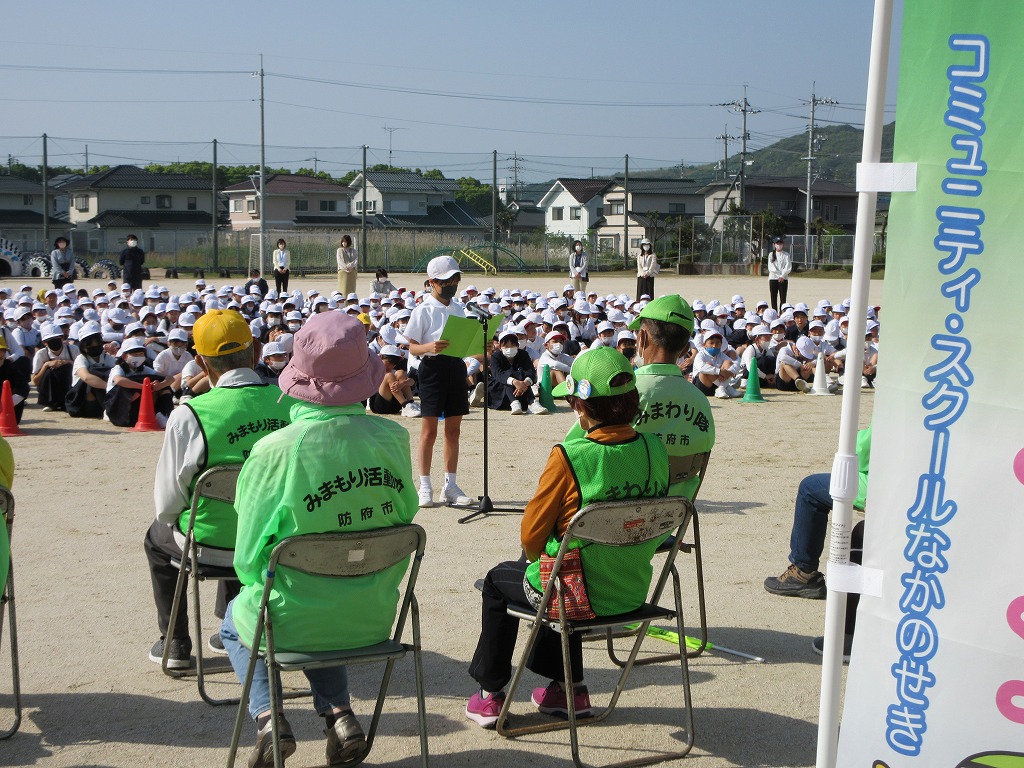 いつも子どもたちの登下校を温かく見守ってくださる地域の方との対面の会を行いました。会では、みまわり隊、母親クラブ、交通安全協会中関分会の代表の方から子どもたちに安心・安全に登校してほしいという思いのこもったお話がありました。また、6年生代表の児童からは、日頃の感謝の気持ちとこれから1年間よろしくお願いしますという思いを伝える挨拶がありました。