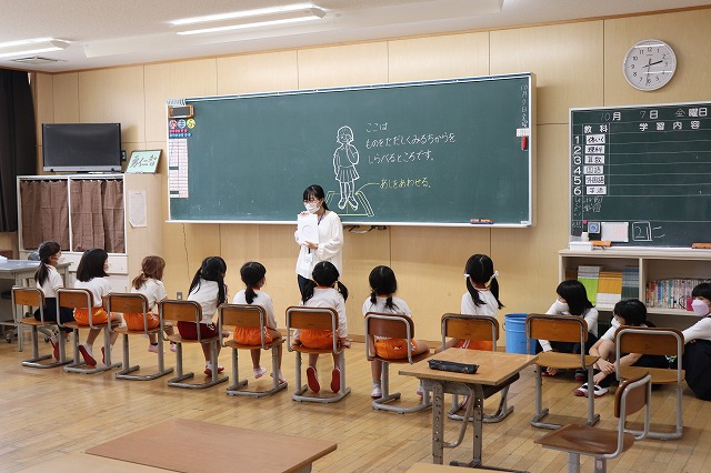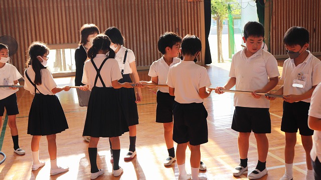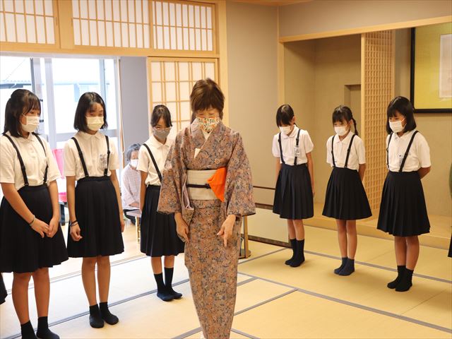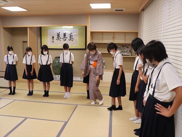 | 4〜6年生が参加するクラブ活動。華道・茶道クラブでは地域の先生を講師にお招きし、活動を行っています。華道では季節や行事にちなんだお花やその見せ方、茶道ではおもてなしの心など、方法だけでなく、相手を大切にする心を学んでいます。限られた時間ではありますが、地域の先生方のご指導のもと、程よい緊張感の中で子どもたちが楽しく活動しています。 |